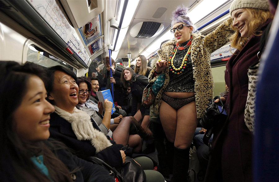 Эксцентричная жительница Лондона — в леопарде, без штанов, зато в бусах.
