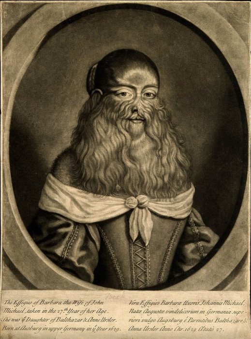 Барбара Урслер родилась в Аугсбурге (Бавария) в 1629 году. Когда она была еще младенцем, у нее на лице стала расти борода. Она начиналась от бровей и заканчивалась под подбородком, скрывая лоб, щеки и нос густыми русыми волосами. Исследователи полагают, что у Барбары было очень редкое врожденное состояние, известное как гипертрихоз. История знает немало людей, чаще мужчин, у которых лицо полностью заросло волосами.