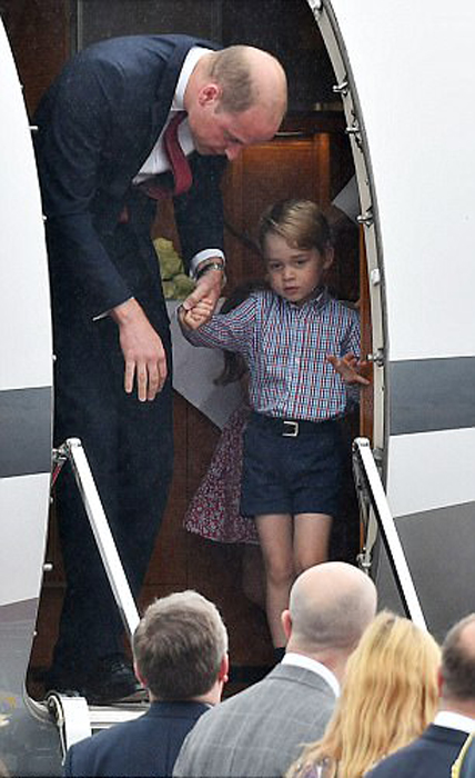 Принц Уильям выходит из самолета вместе с сыном.