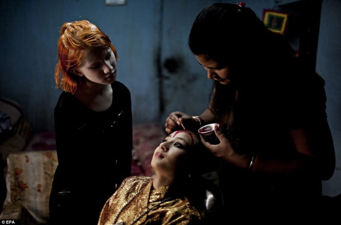 Перед каждой церемонией Кумари рисуют на лбу третий глаз. Кумари считаются священными и не должны касаться земли, поэтому их возят на колесницах и носят на руках. Девочкам запрещено ходить в школу и участвовать в жизнь общества.