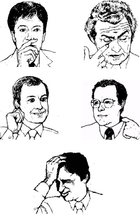Сотрудники силовых структур и эксперты по безопасности одновременно оценивают жестикуляцию, несоответствие реакций и словесный контекст. О ложных показаниях практически безошибочно свидетельствует язык тела. При попытках скрыть правду жесты подозреваемого становятся более скованными, руки начинают двигаться по направлению к оппоненту. Лжецу захочется чаще прикасаться к лицу, а вот трогать живот и грудную клетку он не станет. Допрашиваемый постарается избежать столкновения взглядами, предпочтя почесать ухо. Из-за чувства крайнего дискомфорта и волнения виновный судорожно станет перемещать предметы, пытаясь подсознательно отгородиться от собеседника. Профессионалы обращают внимание на самые незначительные нюансы и эмоциональные колебания. У лжеца проявление реакций на долю секунды медленнее. При этом эмоция задерживается дольше обычного. Речевое выражение не всегда соответствует мимике. Скупость подвижности лица при изложении мысли – верный признак лжи. Так, при «дежурной улыбке» глаза остаются на месте, не выражают положительных чувств.
