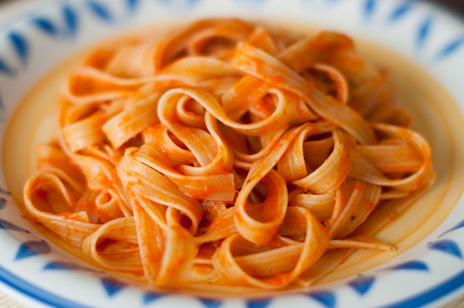 Феттуччине — паста в виде длинных полосок теста шириной около 7 миллиметров. Название происходит от итальянского слова «fettuccia», что означает «ленточка».