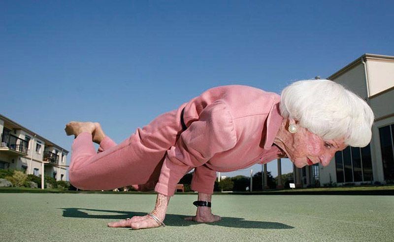 Несмотря на то, что Бет Кальман уже 83 года она по-прежнему изгибается изо всех сил, дабы продемонстрировать пользу древнеиндийской дисциплины. Проворная бабушка и вправду может выполнять некоторые упражнения. А с распущенными волосами и жемчужными серьгами она выглядит также гламурно, как Грета Гарбо в розовом комбинезоне. Сорокалетняя практика преподавания йоги доказывает, что посвятив свою жизнь этой дисциплине, вы останетесь гибким как каучук.