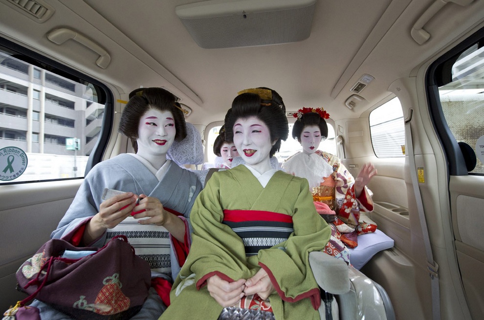 Гейши едут на банкет к своим клиентам. (EFE/Everett Kennedy Brown)