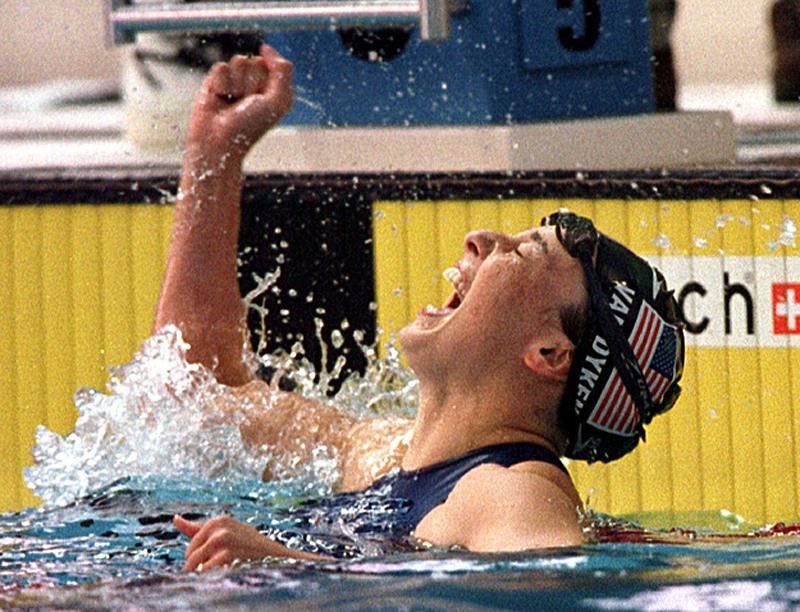 Эмми Ван Дайкен радуется, выиграв 4 золотые медали на Олимпиаде. (Nick Didlick / Reuters)