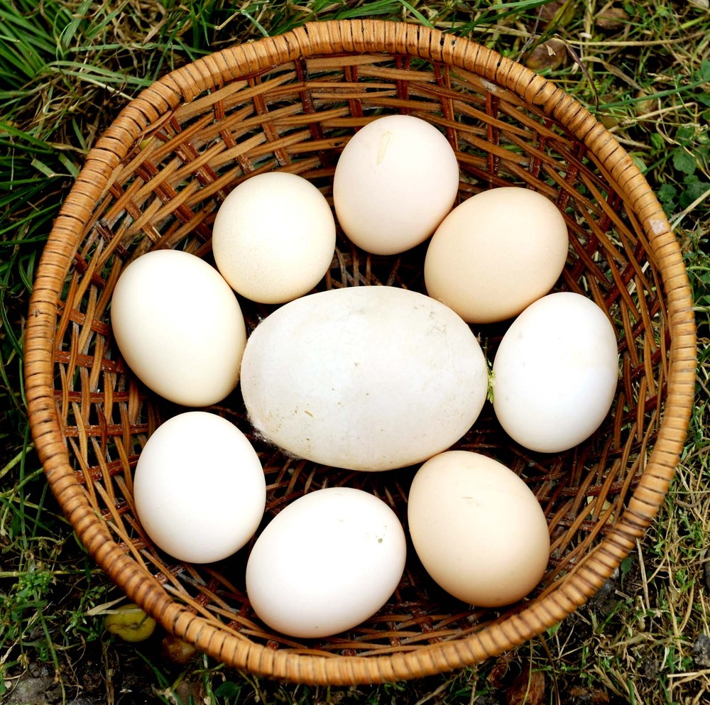 Огромное куриное яйцо в 8,2 см длиной, 6,3 см шириной и весом в 170 грамм. Владельцем курицы, снесшей яйцо, является грузин Мурман Модебадзе из Тбилиси. (Photo by Vano Shlamov/AFP Photo)