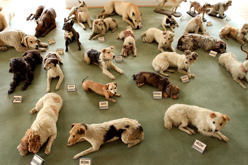 Самая большая в мире коллекция чучел собак. Ее владелец — барон Джордж Хаас, который покончил с собой в 1945 году перед депортацией в Австрию. У барона были тысячи животных и около 200 собак, 51 из которых он превратил в чучела после их смерти. (Photo by Radek Mica/AFP Photo)