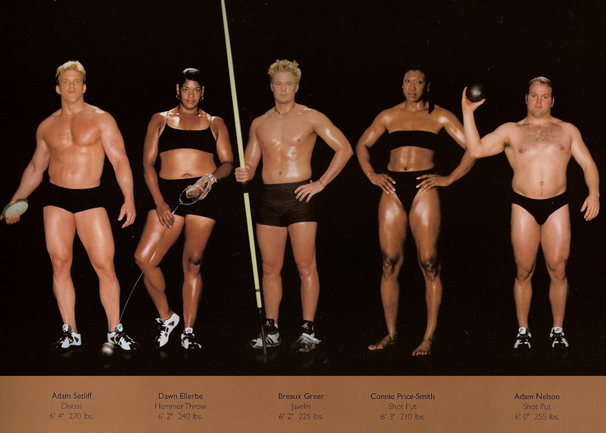 Дискобол, метание молота, метание копья, толкание ядра – женщины и мужчины.