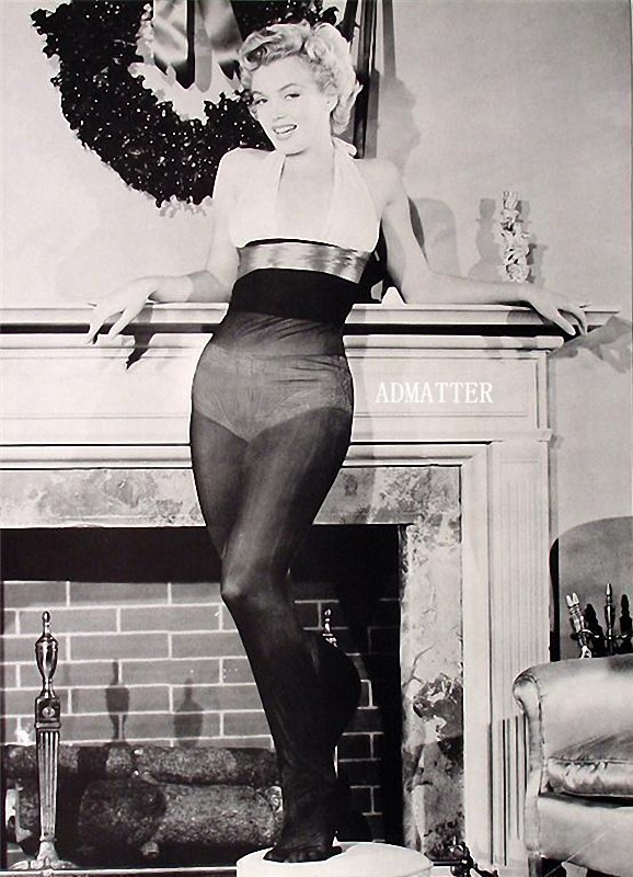 После окончания войны осенью 1945 года “революционный товар” снова появился ассортименте магазинов, и опять женщины часами стояли в очередях, чтобы его приобрести. Фото из рождественской фотосессии Мэрилин Монро.Позже в моду стали входить короткие юбки, а чулки «срослись» и приобрели вид нейлоновых колготок, дамам уже не нужно было переживать из-за открывающихся мужскому страстному взору резинок.