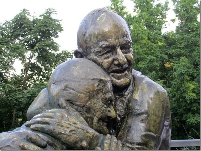 Несколько лет назад в Киеве (рекомендуем, кстати — туры выходного дня из Киева) установили скульптуру, изображающей пожилого мужчину, нежно прижимающего к своей груди пожилую женщину. История, стоящая за этим памятником, скрывает целую эпоху, полную различных событий, но центральной линией в которой выступает любовь. Эти двое — это итальянец Луиджи и украинка Мокрина, которые полюбили друг друга во время войны, но воссоединить свои сердца смогли только в глубоко пожилом возрасте.