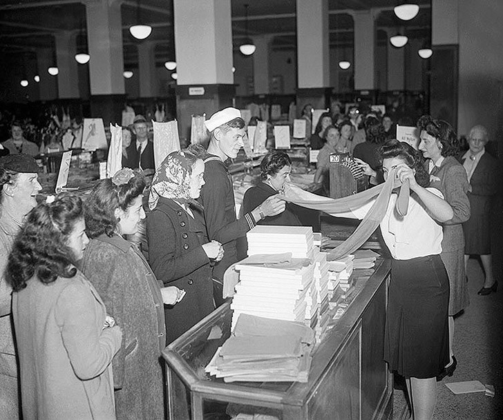 Хотя нейлоновые чулки были вдвое дороже шелковых, спрос на них превзошел все ожидания. Фото: Bettmann / CORBIS