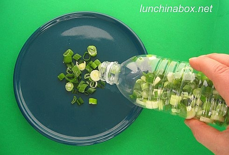 Храните резанный зеленый лук в морозилке в пластиковых бутылках. Только убедитесь, что лук абсолютно сухой, прежде чем засыпать его в бутылку.