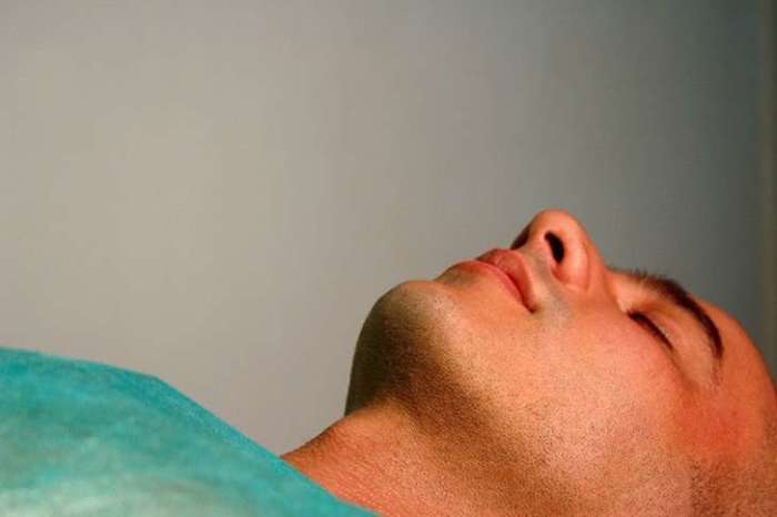 Далее добровольца, которого зовут Родриго Брага, укладывают на кушетку и вставляют в рот трубку, чтобы ему было удобнее дышать.