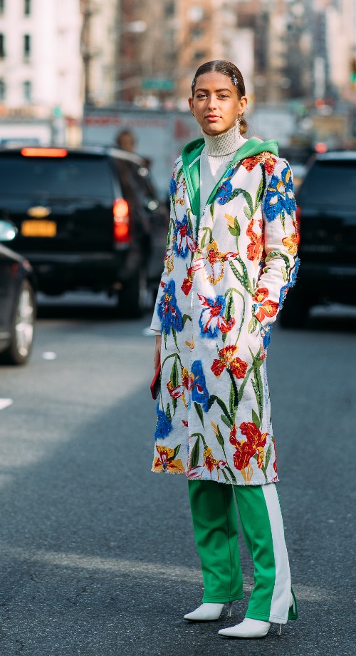 Не забывайте, что весна – время ярких цветов и различных принтов (рифма). Пусть спортивные брюки красного, зеленого или голубого цвета будут частью вашего романтичного наряда. А достичь такого результата поможет яркое пальто, блейзер с цветочным принтом или топ с графикой.