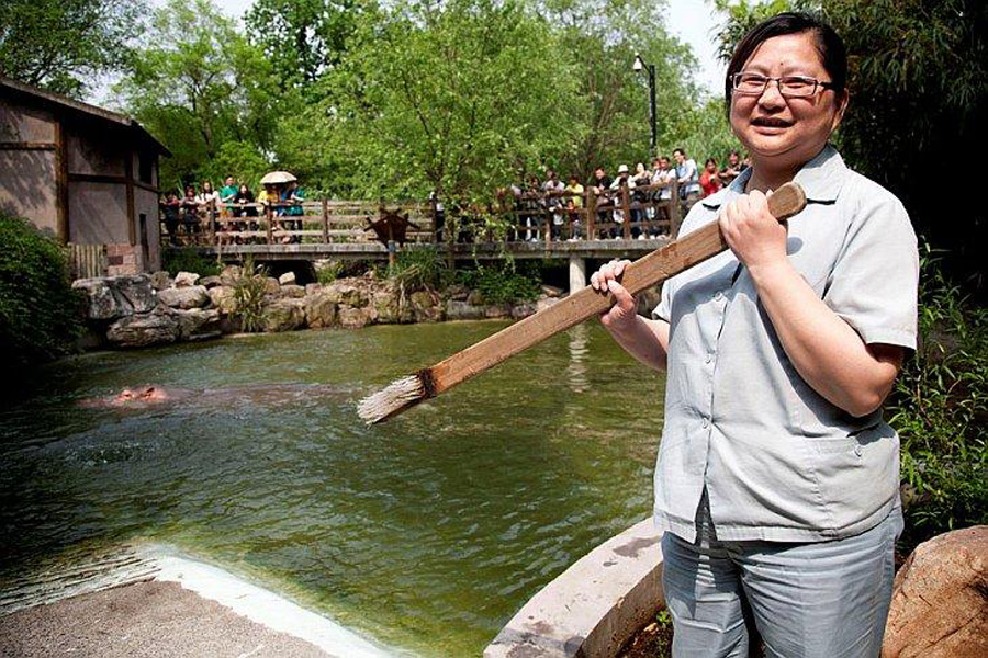 В дикой природе бегемотам чистят зубы мелкие рыбки. В зоопарках эту роль взяли на себя работники. Как делать это правильно, нам покажут в зоопарке Шанхая сообщает *Настроение* по материалам сайта Новости в фотографиях Бегемот весит от трех до четырех тонн и на сегодняшний день является одним из крупнейших наземных животных. В большинстве случаев гиппопотам передвигается шагом. Но он также может развивать скорость до 30 километров в час. Спутать бегемота с другим животным сложно – у него крупное бочкообразное туловище и коротенькие толстые ноги. Огромная голова бегемота по весу занимает четверть его массы (до 900 килограмм) и в профиль имеет форму прямоугольника. Одна из удивительных способностей этого животного это открывать пасть на 150 градусов. У гиппопотама очень громкий голос в 110 децибел. Если погода тихая, то его крик можно услышать за сотни метров.