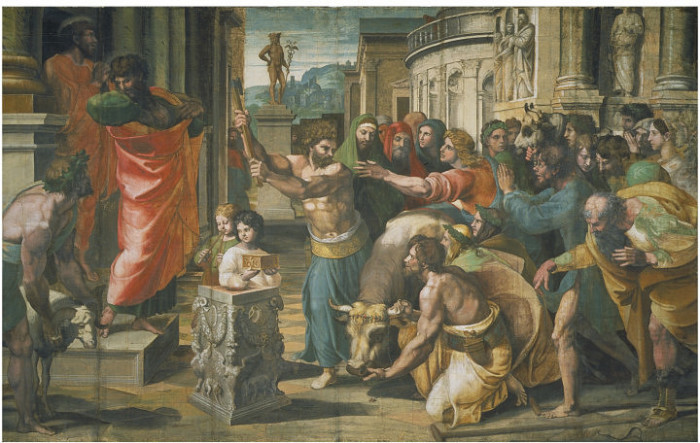Жертвенная корова на картине Рафаэля «Жертвоприношение в Листре» (1515). | Фото: commons.wikimedia.org.