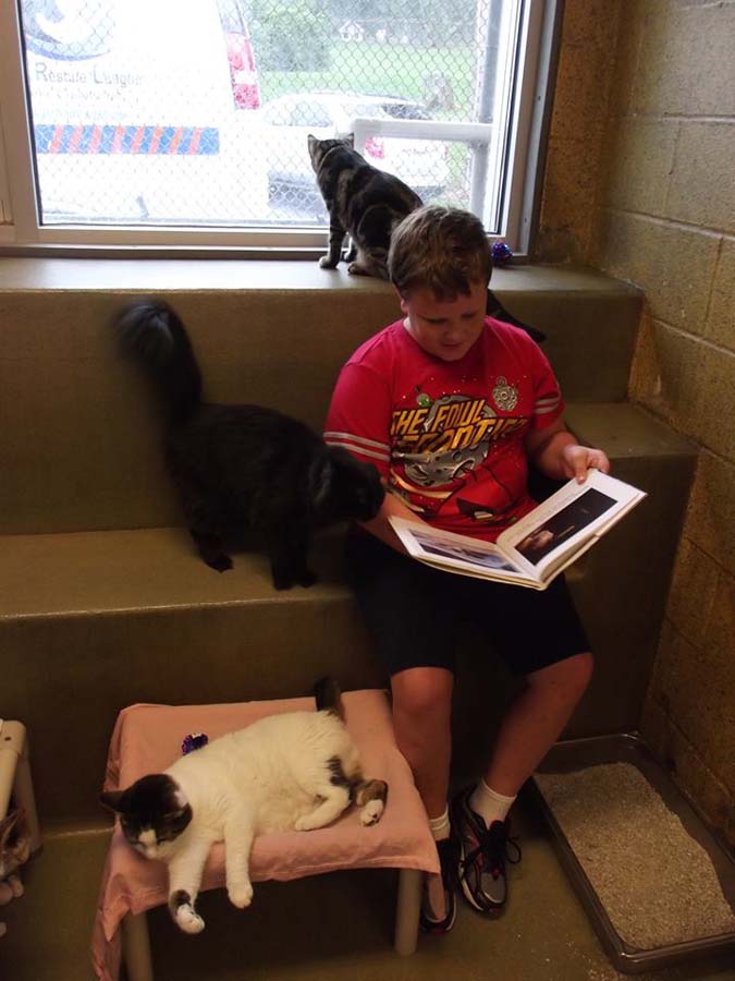 Вы когда-нибудь читали своему коту? Думаете это глупо? Вовсе нет, особенно если это делает ваш ребенок. Приют для животных округа Беркс, в американском штате Пенсильвания доказал, что чтение кошкам – это не просто забава. В службе спасения животных округа Беркс есть программа под названием «Книжные друзья», в которой дети с первого по восьмой класс приходят к ним в приют и читают книжки… кошкам. Мальчики и девочки заходят в комнату, где им можно гладить и играть с очаровательными кошками и котами, в то же время читая любимые книжки, сообщает *Настроение* по материалам сайта *Новости в фотографиях* Работники приюта утверждают, что «кошек ритмический звук голоса успокаивает и расслабляет», да и исследования Университета Тафтса поддерживают эту идею. Исследования показали, что взаимосвязь человека и животного может улучшить процесс обучения и сделать его более приятным и комфортным для детей. В случае с программой «Книжные друзья», дети охотнее читали, когда рядом находились пушистые компаньоны. На создание программы ее координатора Кристи Родригес вдохновил ее 10-летний сын Шон. Когда она заметила, что Шон не стремится развивать навыки чтения, она привела его в приют для животных и вскоре поняла, что он охотнее садится за книжку, когда рядом кошки. Очевидно, ему настолько понравилась идея читать кошкам, что он захотел вернуться и продолжить. Сейчас Шон вдохновляет и других родителей приводить своих детей в приют для участия в программе. Кажется, от этого выигрывают все – и дети, и животные.