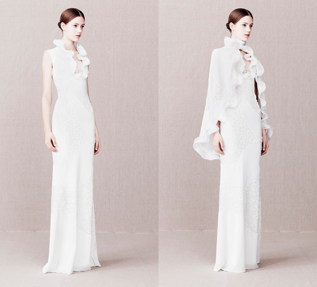 Межсезонная коллекция Alexander McQueen напоминает одежду из исторических фильмов. Интересная и богатая отделка, классические цвета, длина в пол — красиво, но не практично. Все же такое привычно видеть в кутюрных коллекциях, а Pre-Fall должен быть носибельным сообщает *Настроение* по материалам сайта *StarLook*
