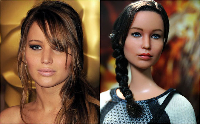 По следам успешного сериала «Голодные игры» появились куклы-копии исполнительницы главной роли, Дженнифер Лоуренс. Кукла одета как Китнисс, героиня фильма, а волосы уложены в косу. В комплекте идут лук и стрелы. Первые модели внешне мало напоминали лицо актрисы. Макияж куклы – дело рук Ноэля Круза, автора макияжа куклы-копии Анжелины Джоли.