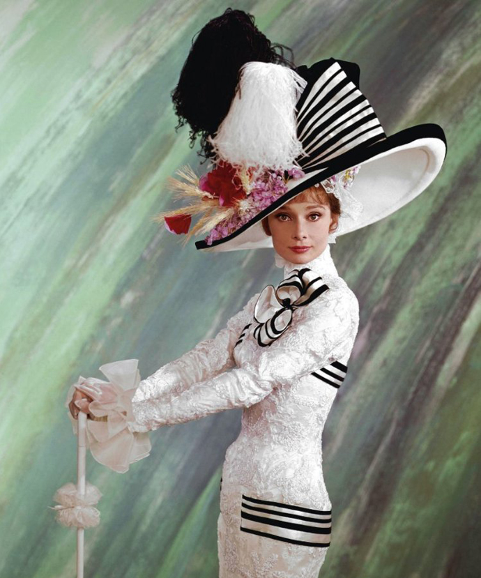 Пожалуй, самая известная фотография Одри в шляпе. Декор шляпы невероятно сложен. Сложно представить, как такую конструкцию можно удерживать на голове