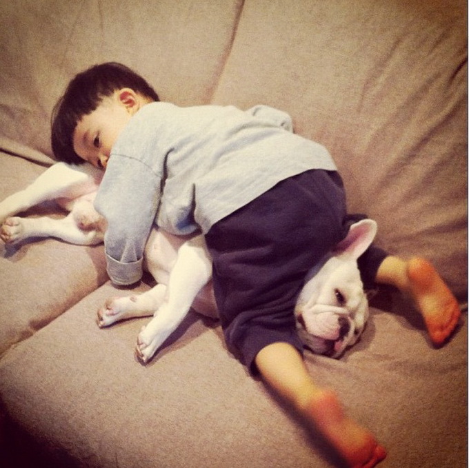 Малыш и бульдог: неразлучные друзья. Это очень трогательно. Фото