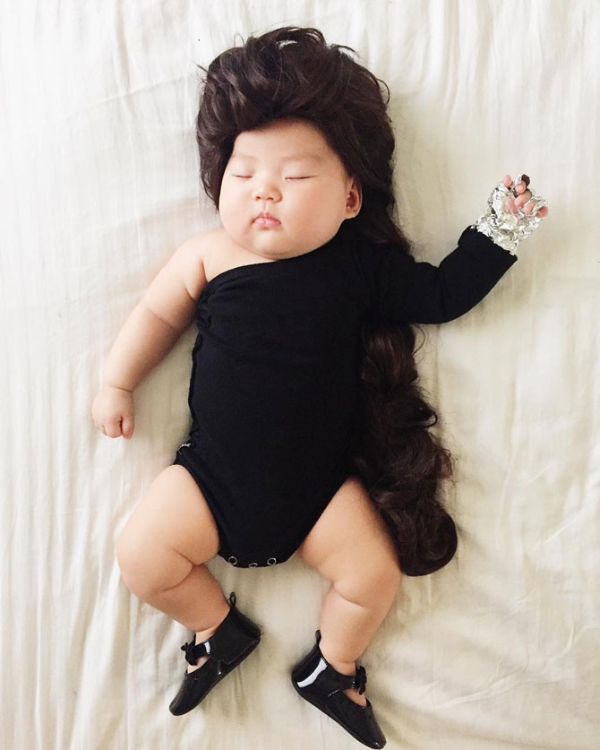 Мама наряжает спящую дочку в забавные костюмы. Фото