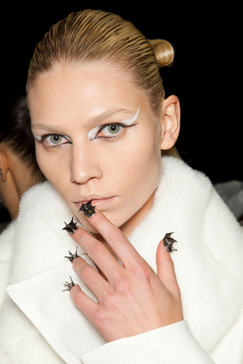 Но и этим в скором времени ограничиваться не будут. На подиуме демонстрируются самые необычные формы ногтей, а многие производители готовят нам невероятно фантазийные варианты. Правда, в нашей стране эта тенденция распространяется не так быстро, а вот зарубежные модницы уже ждут новинок, а некоторые даже носят их. А нам пока можно посмотреть некоторые варианты с показа Thierry Mugler, где использовались ногти бренда H&H.