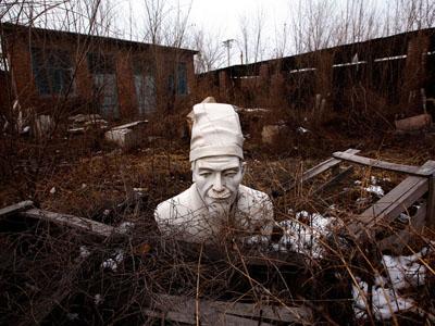 Бюст Конфуция в заброшенной мастерской в городе Данчэн, Цюйян, Китай.