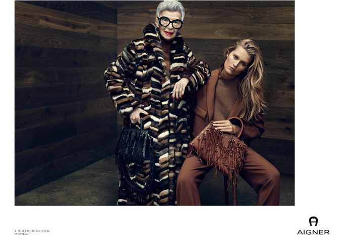 Немецкий бренд аксессуаров Aigner пригласил модель Тони Гаррн (Toni Garrn) для съемок осенне-зимней кампании 2016/17 «Epic Heights». Модели составила компанию 94-летняя Айрис Апфель (Iris Apfel) и модель Джейсон Морган (Jason Morgan), сообщает *Настроение* по материалам сайта *Etoday*
