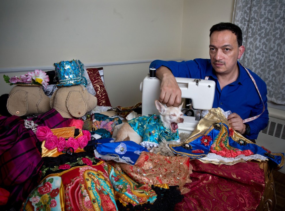 Энтони Рубио и его чихуахуа Кимба. Энтони шьет модные наряды для собак, причем, некоторые его творения могут стоить до 600 долларов.