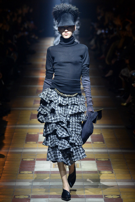 Несмотря на то, что коллекция Lanvin на первый взгляд кажется однообразным по цветовой гамме, все же по стилевой направленности она очень контрастная. Показ начинался образами в стиле бохо-шик, продолжился элегантностью, а за ней последовал и милитари. Темные оттенки, классический монохром, синий и болотный цвета дополнены оригинальными аксессуарами, необычной обувью и, конечно же, мехом. Без него не обошелся никто на показах, сообщает *Настроение* по материалам сайта *StarLook*