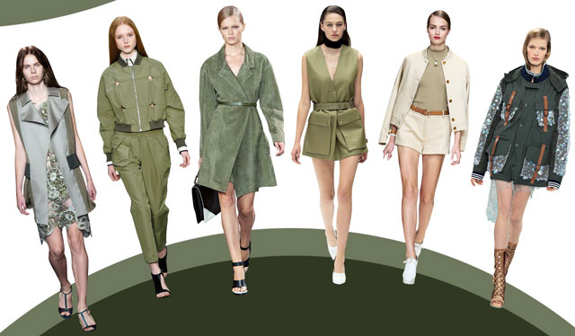 Униформа и цвет хаки Mary Katrantzou, Yigal Azrouël, Jason Wu, Acne, Trussardi, Rodarte