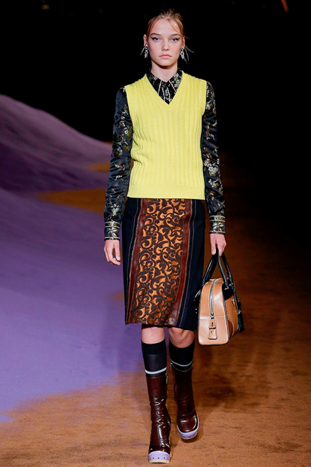 Мода: Prada рекомендует темные юбки в стиле 50-х и кожаные тренчи. Фото