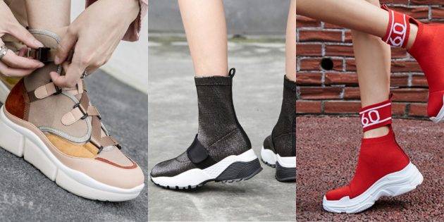 Дополнительные ремни, перетягивающие щиколотку или икру, придают спортивной, в общем-то, обуви, внезапный шик и романтичность. Бонус: свойственная таким моделям высокая платформа визуально добавляет ногам длины.