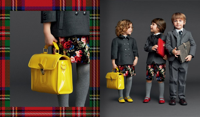 Август на исходе, и уже совсем скоро 1 сентября, парты, учебники, ранцы и, конечно же, обязательная теперь в нашей стране школьная форма. Свое видение школьной одежды представил бренд Dolce&Gabbana. Их осенне-зимняя коллекция 2014 дополнена яркими школьными сумками для маленьких, но уже таких взрослых, учеников сообщает *Настроение* по материалам сайта *Etoday*
