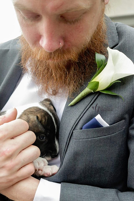 Молодожены ради щенков отказались от букетов на свадьбу. Фото