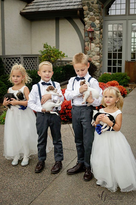 Молодожены ради щенков отказались от букетов на свадьбу. Фото