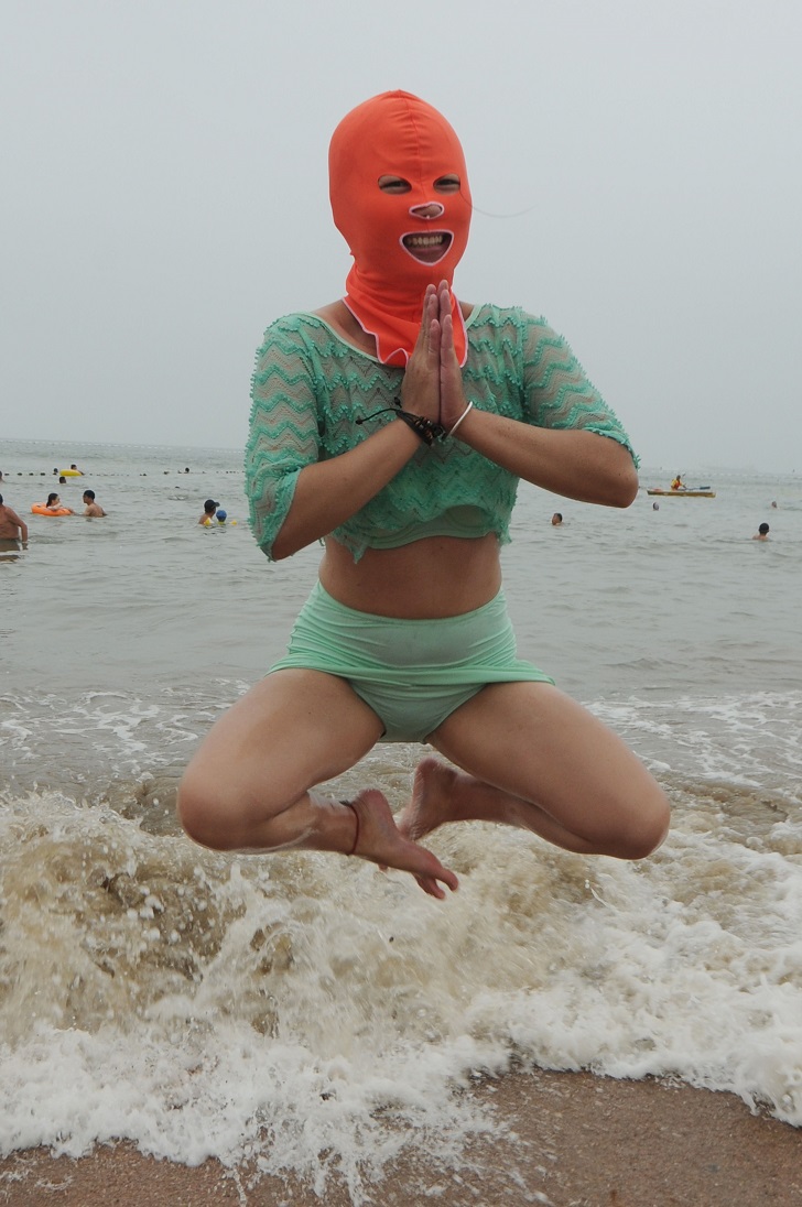 На пляжах Китая женщины ходят в модных масках на лице. Фото