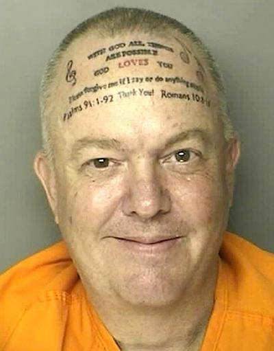 Татуировка на лбу Роберта Нортона Кеннеди из Южной Каролины, арестованного за рукоприкладство, является ссылкой на стих из Евангелия от Матфея 19:26 «С Богом все возможно» и «Бог любит тебя».