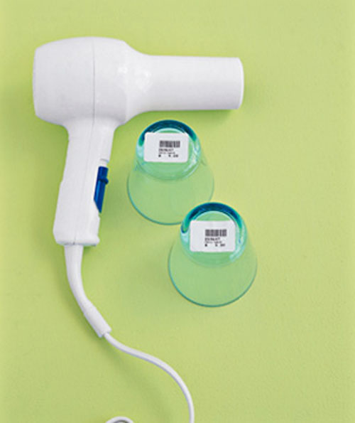 Приставшие намертво этикетки легко удалить, подержав их под горячей струёй фена.