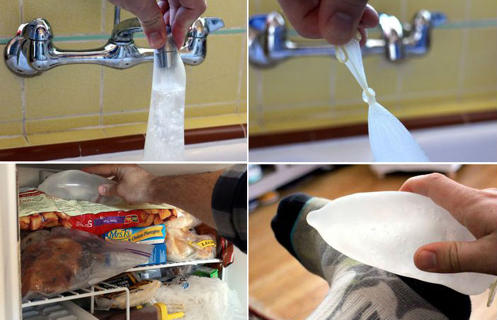 Вывих лодыжки или болит шея? Замечательный ледяной компресс получится, если заполнить презерватив водой, завязать его конец и положить в морозилку.