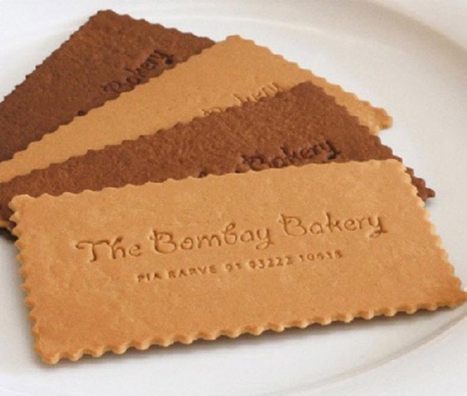 Аппетитная визитка в форме печенья — реклама пекарни.