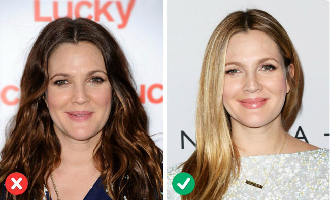 Светлый цвет омолаживает — это фундаментальное правило, но тут важно выбрать подходящий тон и оттенок волос. Не рекомендуется осветлять волосы больше, чем на 2–3 тона от их природного цвета, а оттенок следует выбирать, ориентируясь на цвет глаз и кожи. Женщинам, которые не склонны к радикальным переменам, можно осветлить несколько прядей. Светлые локоны придадут коже сияние и сделают образ динамичнее.