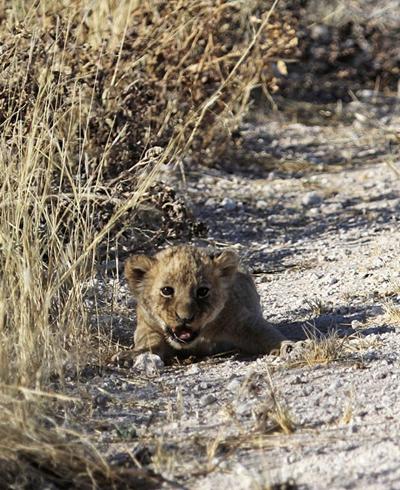 Очаровательный львенок из Намибии удивил водителей. Фото