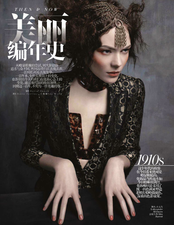 Модель Кинга Райзак (Kinga Rajzak) представила в Vogue China ретроспективу образов от 1910х до 1990х. Девушка позировала Дэвиду Данану (David Dunan). Ретро-ансамбли составлены из нарядов от Alexander McQueen, Gucci, Marc Jacobs и Saint Laurent сообщает *Настроение* по материалам сайта *Etoday*