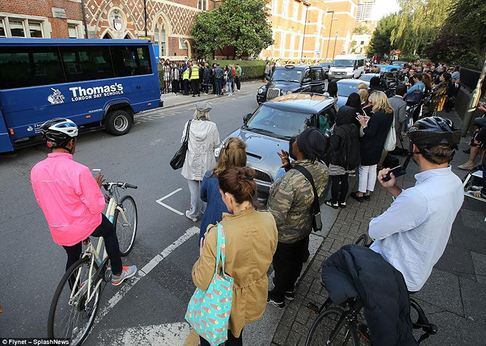Местные жители ожидают приезда принца в школу.