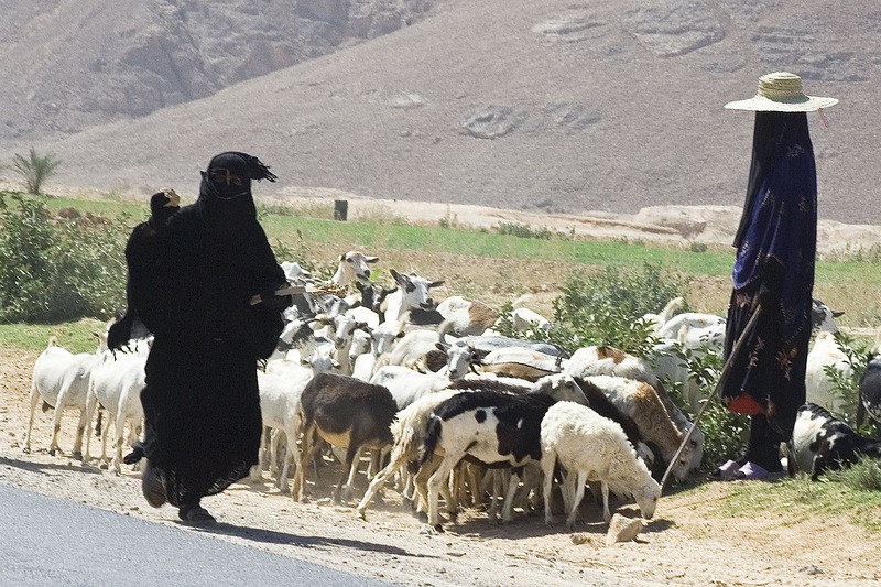Увидев на дороге «ведьмочек», перегоняющих стада, туристы обычно хватаются за камеры — каждому охота сфотографировать такое диво. Но с точки зрения йеменских женщин, фото — это «Харам», грех. У них даже есть поверье, будто на компьютере с любой фотографии можно убрать маску с лица, и тогда все тебя увидят в интернете — вот позорище-то! Поэтому йеменки бросаются в туристов камнями. Та дама, что стоит слева, как раз кидает в меня камень. Да, эти фото достались мне нелегко:)))