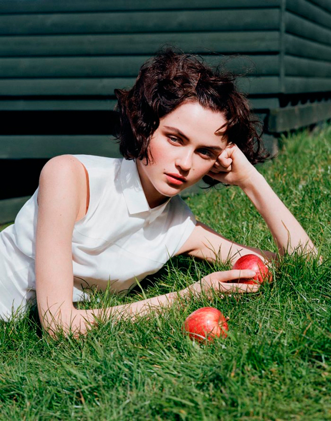 Модели Раса Зукаускайте (Rasa Zukauskaite) и Джейс Муди (Jace Moody) в кадре изображают молодую пару, отдыхающую на природе – на зеленой лужайке и морском побережье. Фотографии получились похожими на старинные – стилисты постарались передать очарование конца пятидесятых годов. В этом им помогли купальники, шорты, блузки и укороченные брюки от Celine, Stella McCartney, Jil Sander, Miu Miu, Prada и других брендов.