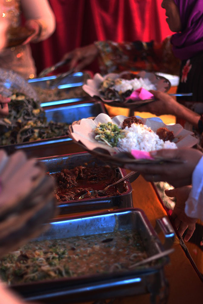 Жених и невеста не смотрят друг на друга во время всей церемонии, и их лица не выражают никаких эмоций. Брачующихся накрывают расшитым платком, знаменующим, что отныне у них один ум на две головы. Иначе говоря, теперь молодожены должны во всем советоваться друг с другом и все решения принимать обоюдно.