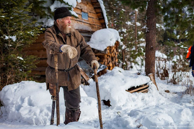 Знакомьтесь – Агафья Лыкова. Она в одиночестве проживает в Хакасской тайге в урочище реки Еринат. Её семья жила в полной изоляции от внешнего мира с 1937 года и старалась уберечь себя от отрицательного влияния внешней среды. Сегодня мы отправляемся в гости к Агафье Лыковой и посмотрим, как ей живется, сообщает *Настроение* по материалам сайта *Fresher* Агафья единственная осталась в живых из большой семьи отшельников-староверов, найденных геологами в 1978 году в Западных Саянах. Первоочередной целью полета в хакасскую тайгу было традиционное противопаводковое мероприятие – обследование снежных запасов в верховьях реки Абакан. У Агафьи Лыковой остановились ненадолго. Вместе со специалистами МЧС летели врач и сотрудники заповедника «Хакасский», которые давно знакомы с Агафьей и активно ей помогают. В этот раз Агафье привезли продукты, а спасатели помогли по хозяйству: натаскали дров, воды и т.д. Сосед Агафьи – Ерофей Седов. Его маленькая избушка находится примерно в пятидесяти метрах от дома Лыковой. Ерофей почти всю жизнь прожил в Абазе, работал геологом. Знаком с семьей Лыковых с 1979 года. Рассказывал, что в 1988 году даже помогал хоронить главу семьи – Карпа Лыкова. Уже в преклонном возрасте Ерофей лишился правой ноги, после этого в 1997 году он перебрался в тайгу и с тех пор живет по соседству с Агафьей. У Ерофея есть сын, который живет в Таштаголе. Пару раз в год сын прилетает проведать отца на вертолете со специалистами, которые исследуют этот район после запусков «Протона» (заимка находится на территории, куда падают ступени ракет, запускаемых с Байконура).